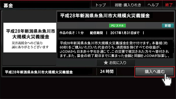 またスマートフォンやタブレット端末でも、J:COMオンデマンドのアプリから募金することができます。