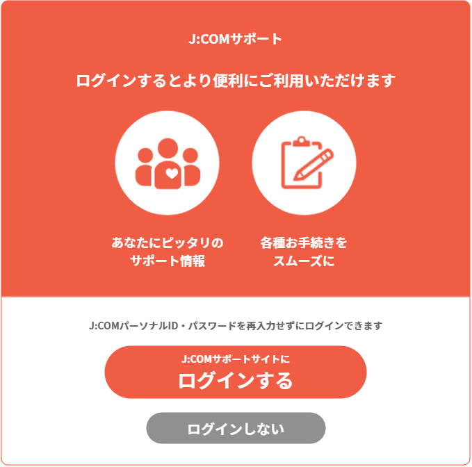 ・TV、NETサービスの設置機器にあわせたサポート情報をお届け ・マイページへもスムーズにアクセスが可能 ・今、注目されている「よくあるご質問」をランキングでご紹介 ※ ログインしなくても、これまでどおりサポートサイトをご利用いただけます